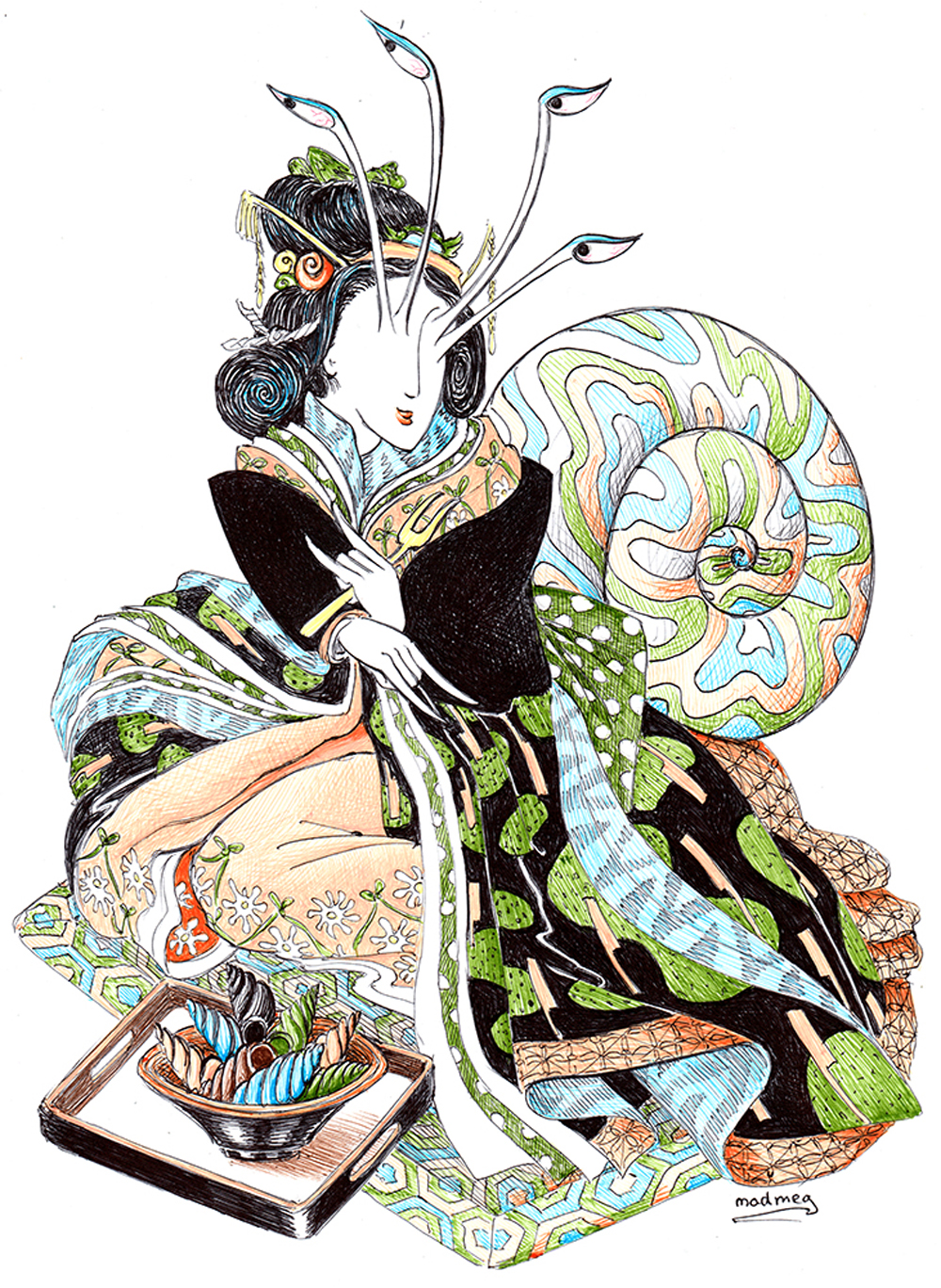 Pour nous perdre un peu entre là-bas et aujourd’hui, voici quelques personnages et scènes de la vie quotidienne des Chaponnesiennes, dans une interprétation qui brouille nos repères culturels temporels et géographiques :