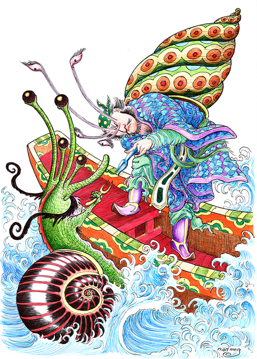 Chaponnet est une île qui est située bien près des Indes. Dans les mers les plus lointaine que l’on puisse atteindre. En cette île, ils étaient en telle erreur et outrance qu’ils avaient plusieurs dieux. […] Le peuple de Chaponnet à coutume d’élire son roi en commun. Tous s’accordent pour un homme de bonne renommée, pieux, fort loyal, plein de bonnes mœurs, qui sera doux et plein de bonnance. Ils veillent à ce qu’il n’ait d’enfant, car ils ne veulent point avoir successeur à leur roi par lignée, mais veulent l’avoir par commune élection. C’est en Chaponnet que croissent les plus grands limaçons qui sont au monde et font tout de cette merveille. Ils les chassent comme nous avec les bêtes sauvages. Ils les harnachent à leurs chars. Enfin ils hébergent les hommes et les femmes dans leurs coquilles tant ils sont grands et n’ont nulle autre maison comme habitation.